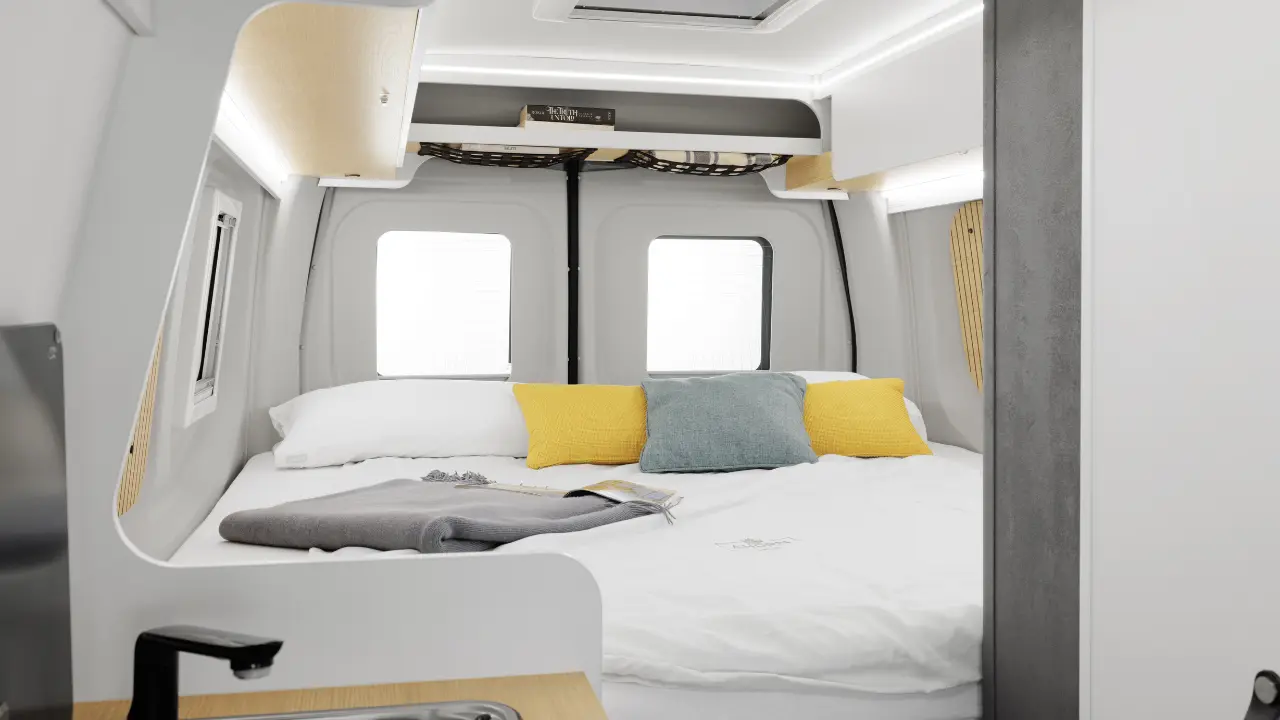 Der CV 560 ist mit nur 5,68 m Länge der perfekte Begleiter für enge Gassen, Bergpässe oder spontane Städtereisen. Trotz seiner kompakten Maße bietet er im Heck ein gemütliches Doppelbett mit praktischem Stauraum darunter – ideal für Gepäck oder Sportausrüstung.