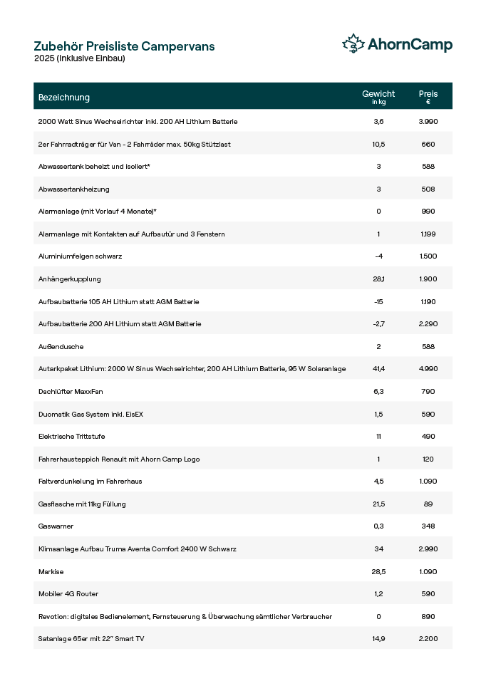 Detaillierte Informationen zu Gewichten und zur Konfiguration des Fahrzeugs finden Sie in unseren Technischen Daten und im Abschnitt Gewichtsinformationen – Rechtliche Hinweise zu gewichtsbezogenen Angaben – auf unserer Website.